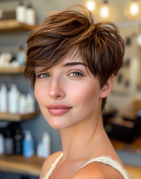 The soft pixie style, characterized by layers and feathered edges, offers a very relaxed and classic look. It is perfect for anyone wanting to try something new and exciting and doesn’t require hours of styling and preparation.