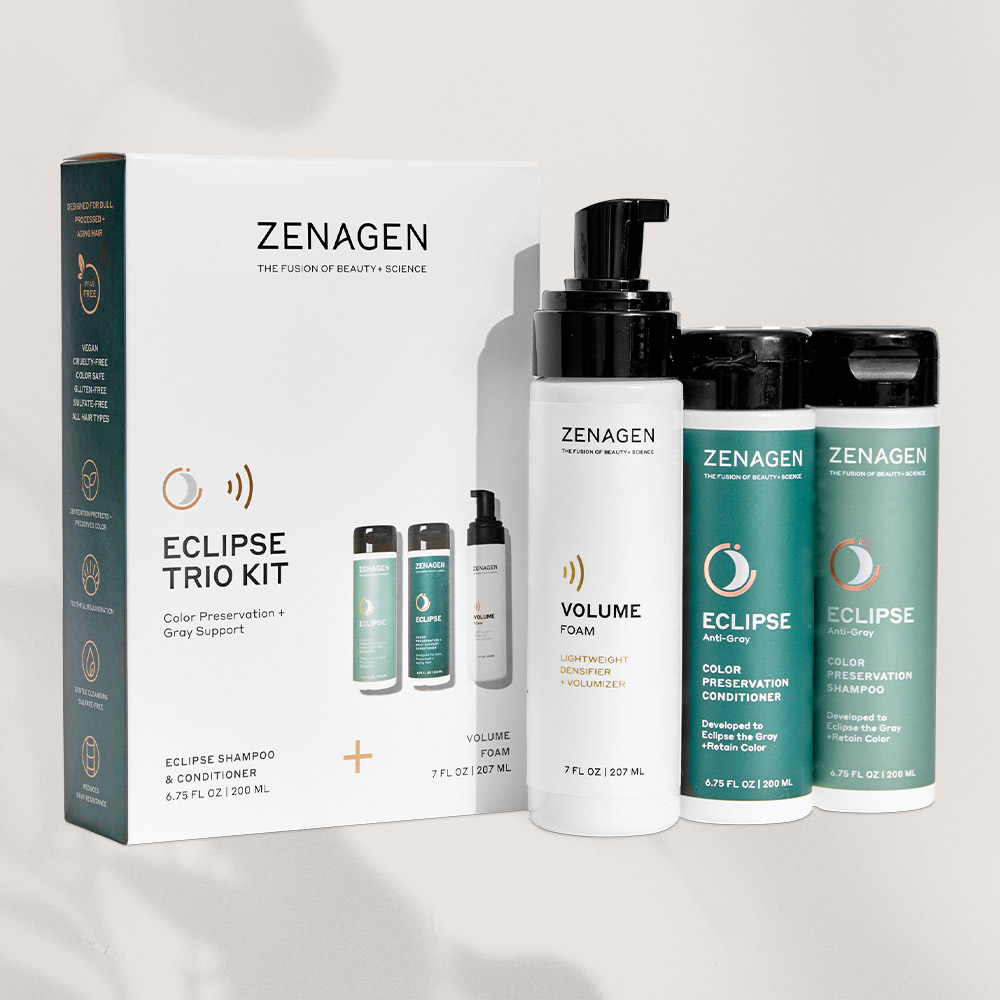 Boost your hair health and protect your color with our Eclipse Trio Box! This includes our ECLIPSE Shampoo and Conditioner to help keep your natural or professional color, along with our Volume Foam to boost your volume!